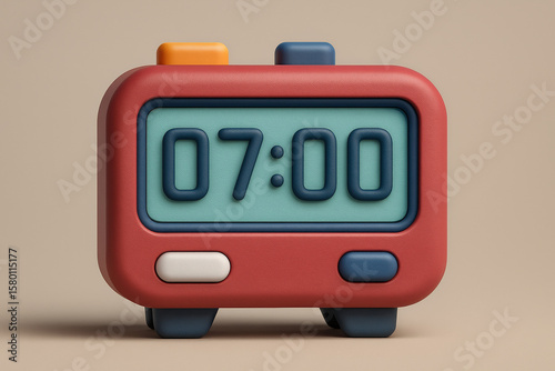Stylized Red Alarm Clock Displaying 700 with Teal Screen and Contrasting Buttons on a Beige Backdrop