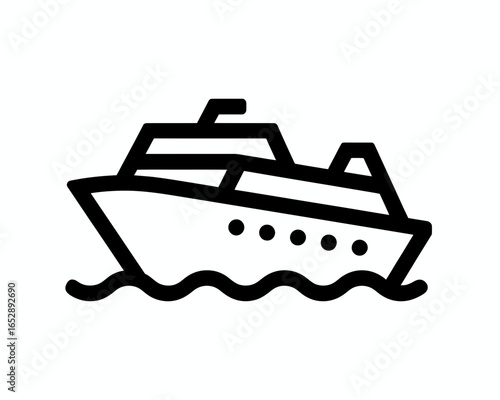 Stylized silhouette of a cruise ship sailing on water isolated on white background
