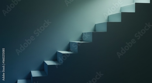 Stylized staircase bars with soft shadows and top glow on higher steps, conveys growth and progress, safe margins