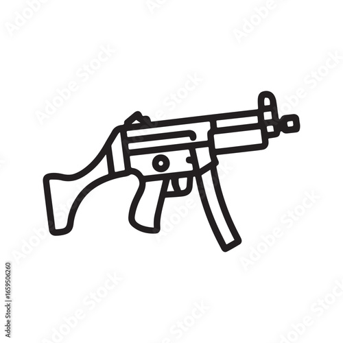 Submachine gun outline icon, SMG automatic weapon vector line art.