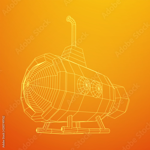 Submarine underwater boat. Wireframe low poly mesh vector illustration