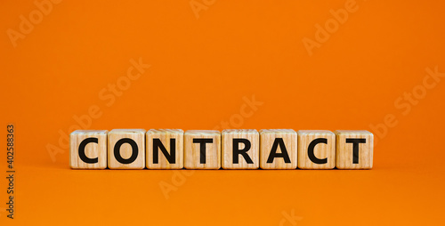 Success business contract symbol. Concept word 'contract' on wooden cubes on a beautiful orange background. Success business contract concept. Copy space.