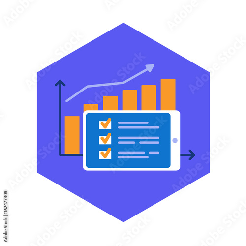 Success, increasing results, performed plan icon. Completed task and excellent statistics. Flat design vector illustration