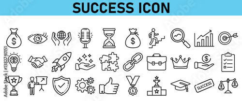 Success line icon set. Contains icons Award, Trophy, Medal, Crown, Winners Podium, Congratulating, Certificate. Vector Icons collection