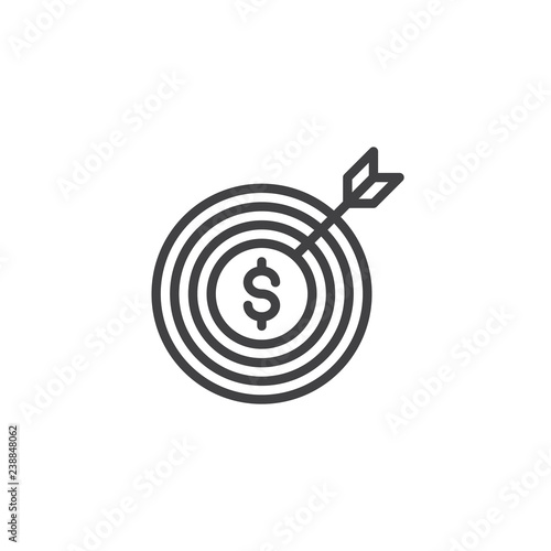 Successful Business marketing outline icon. linear style sign for mobile concept and web design. Dart arrow dollar simple line vector icon. Symbol, logo illustration. Pixel perfect vector graphics