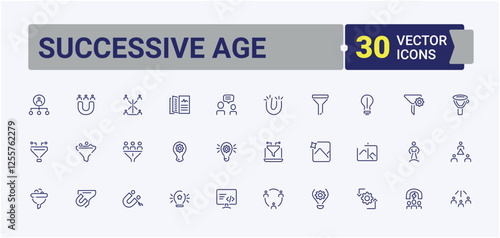 Successive Age simple icon.lined icons set. Includes thin line Generation, chart, senior, old, male, lead and more. Collection for mobile and web apps. Editable vector stroke.