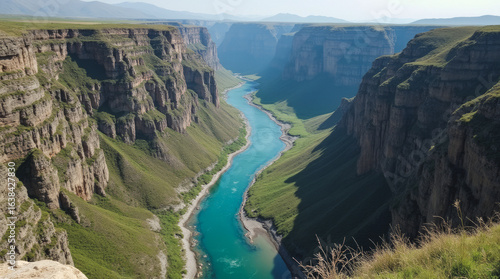 Sulak Canyon Dagestan Russia Deep Turquoise River Winding Through Vast Canyon Cliffs