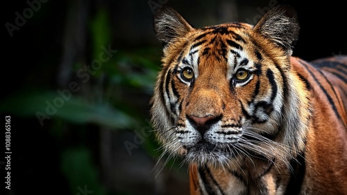 Sumatran tiger standing and looking at the camera with intense gaze