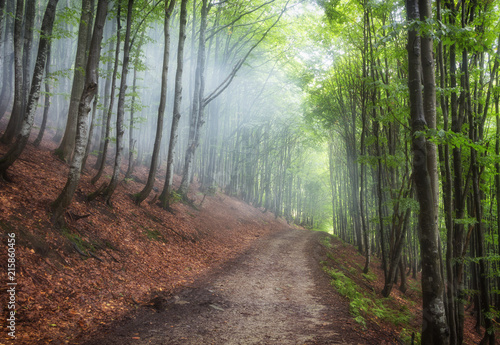 summer beech forest on the slopes of the mountains, Ukrainian Carpathians