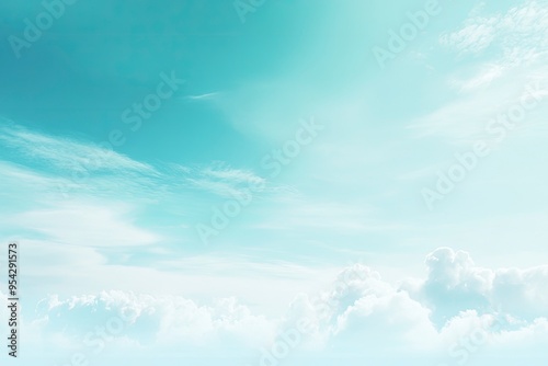 Summer blue sky cloud gradient light white background. Beauty clear cloudy in sunshine calm bright winter air bacground. Gloomy vivid cyan landscape in environment day horizon skyline view spring , ai