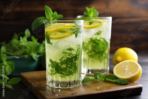 summer cooler lemon-lime soda with mint