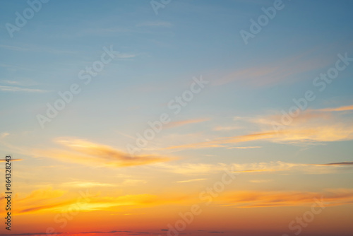 summer evening, sunset in yellow, orange and pink with clouds, background
