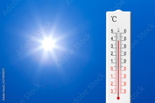 Summer heat. Thermometer shows high temperature in summer. Ambient temperature plus 40 degrees