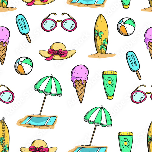 summer icons in seamless pattern