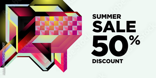 Summer Sale 50% Discount Banner with Colorful Abstract Geometric Background Pattern