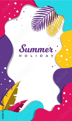 Summer sale banner template. Colorful banners with tropical palm leaves pattern. Summer promotion vertical coupon. Applicable for discount flyer, roll up, poster. Vector illustration.