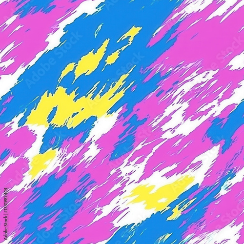 Summer seamless pattern Vibrant abstract design with pink, blue, yellow, and white brushstroke patterns for textile and tile decoration