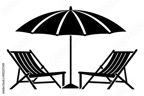 Summer Vacation Beach chair and umbrella Vector Silhouette