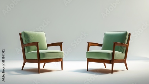 Sumptuous armchair with leather and wood arm design, furniture displayed on a neutral background