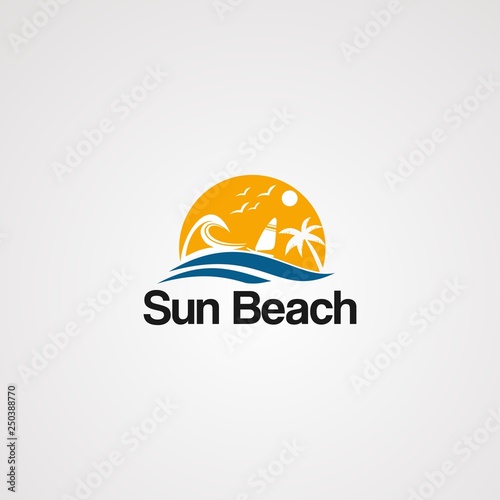 sun beach logo vector, icon, element, and template for company