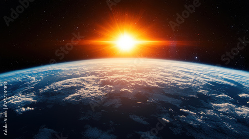 Sun in Natural Phenomena Theme, breathtaking view of sun rising above clouds in space