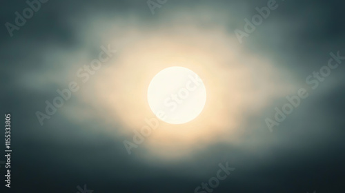 Sun partially obscured by light clouds, creating a halo effect, against a plain gray-blue background