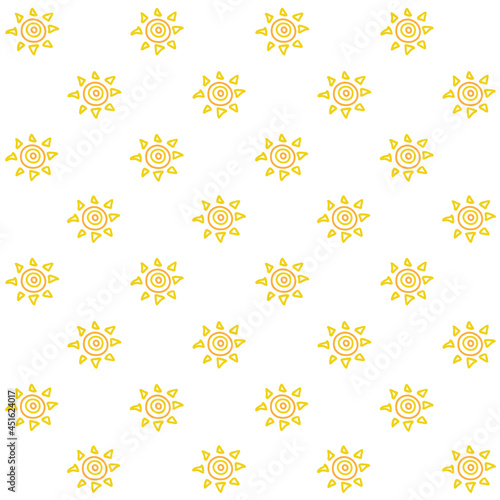 Sun Seamless Pattern - Amazing hand drawn seamless vector pattern of a yellow sun on white suitable for background, fabric pattern, design assets, wrapping paper, wallpaper and illustration in general