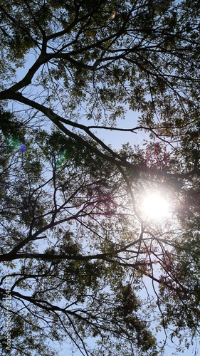 Sun shining through the trees in the forest