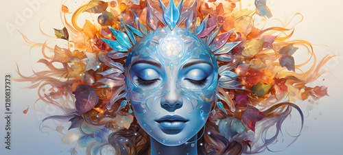 sun with glittercore skin and filigree transparent metallic rainbow leaf, ai generative
