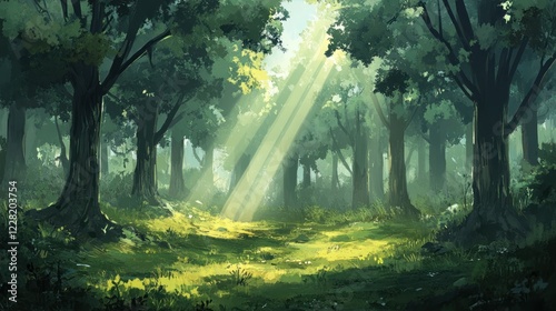 Sunbeams Illuminate a Lush Green Forest Path
