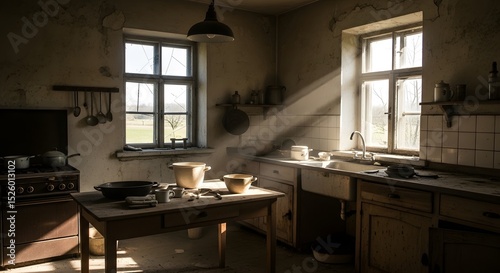 Sunbeams in Rustic Kitchen: A glimpse of old-world charm.