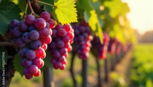 Sun-Drenched Grapes Ready for Harvest A Picturesque Scene of Rural Winemaking, Showcasing Abundant Bunches Hanging Heavy on the Vine, Poised for Transformation into Homemade Wine.
