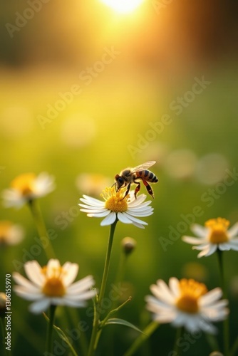 Sun-drenched meadow, honeybees collecting nectar , blossom, abstract, nature