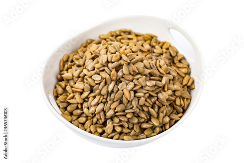 Sunflower Kernels Roasted Seeds Isolated on White Background. Selective focus.