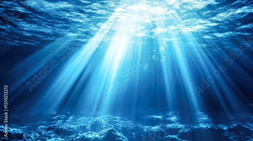 Sunlight beaming through deep blue ocean water creating magical underwater scene