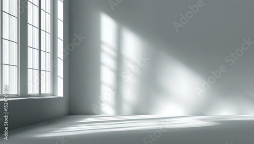 Sunlight casting tree shadows through window in empty room, minimalist architectural light and shadow composition