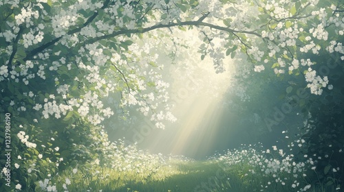 Sunlight Filtering Through Blossoms in a Serene Nature Scene
