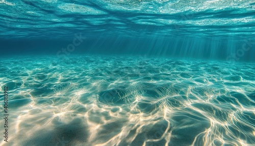 Sunlight filtering through crystal-clear turquoise ocean water illuminating sandy seabed