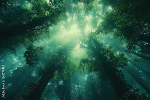 Sunlight pierces through dense foliage, illuminating a path to serenity. It symbolizes hope, guidance, and the beauty found in nature's embrace.