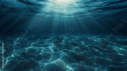 Sunlight pierces through the water, softly illuminating the ocean floor in this underwater perspective