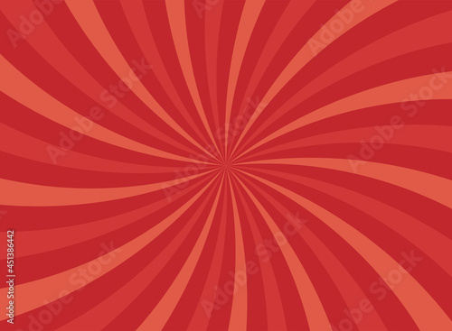 Sunlight spiral rays background. Red swirl focus background. Vector illustration.