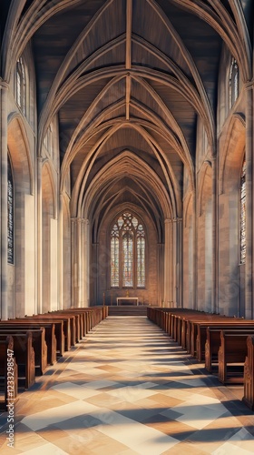 Sunlight streams into a grand cathedral.