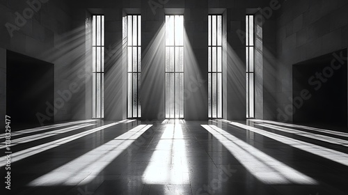 Sunlight Streams Through Tall Windows In Modern Hallway
