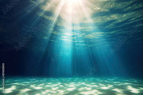 Sunlit Depths. Sunbeams through the Underwater Scene with Sandy Floor. Background