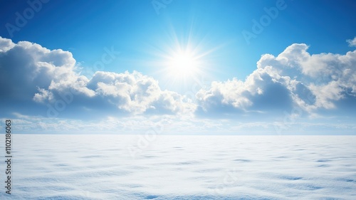 Sunlit expansive snowy plains under soft rolling clouds winter landscape aerial view nature's serenity