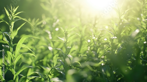 Sunlit Green Plants in Nature with Soft Glow Background