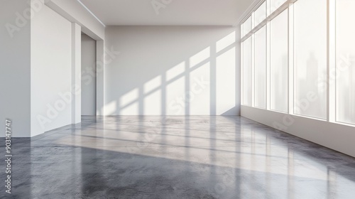 Sunlit Modern Empty Room with Large Windows.