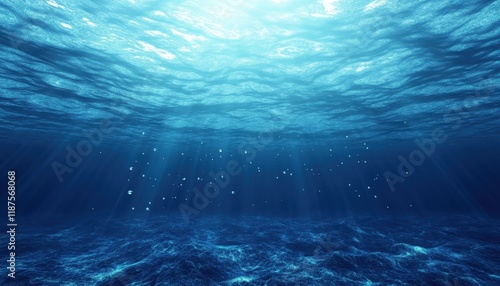 Sunlit Ocean Depths Showing Bubbles And Waves