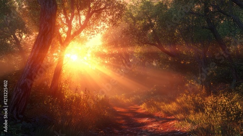 Sunlit Path: A Golden Hour Forest