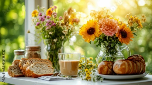 Sunny Morning Breakfast: Fresh Bread and Coffee